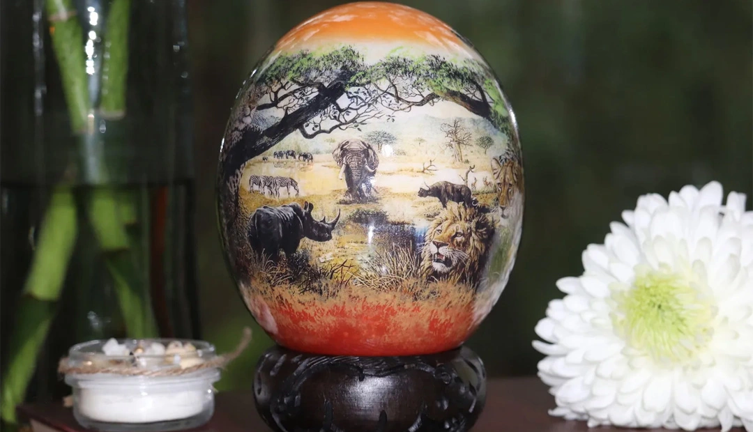 2. کندهکاری روی تخم شترمرغ در آفریقای جنوبی