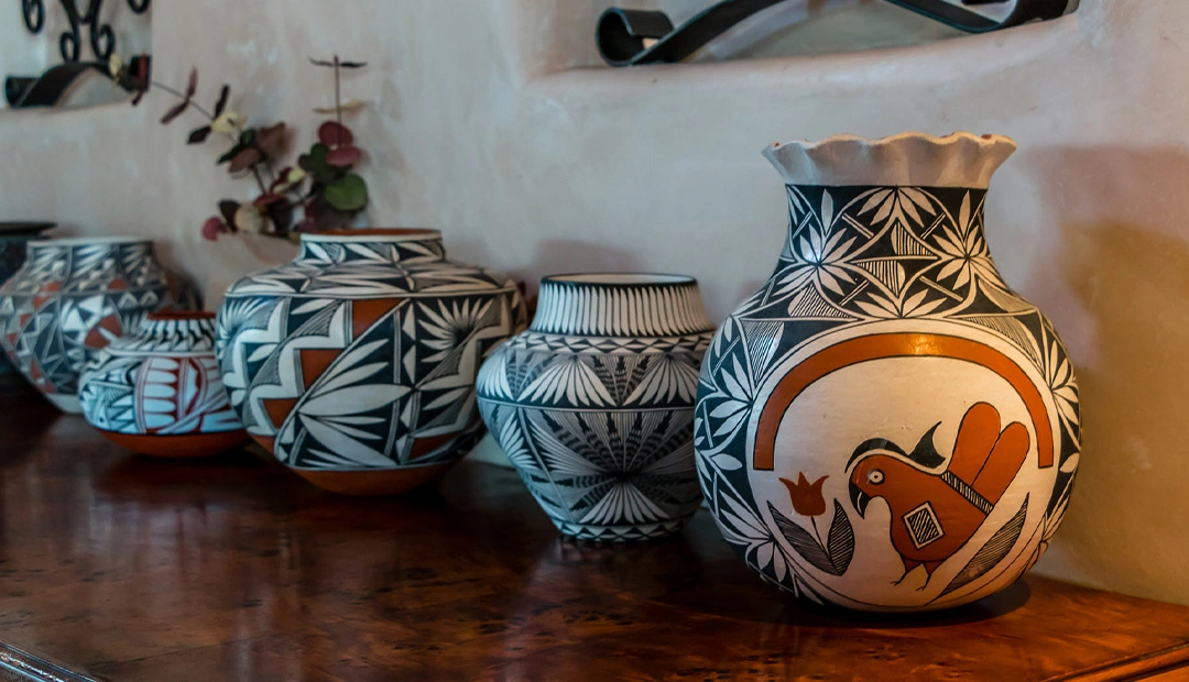 سرخپوستهای نیومکزیکو با خاک بومی این منطقه کوزههای سفالی درست میکنند و طرحهایی با جزئیات بسیار دقیق روی آنها کار میکنند. طرحهای خاص این کوزهها آنها را جزو صنایع دستی عجیب جهان قرار میدهد. فرم بدنه این کوزهها نیز منحصربفرد است و بسیاری از افراد از آن بهعنوان یک اکسسوری تزئینی خاص برای دکوراسیون یا گلدان برای گلهای مختلف استفاده میکنند.